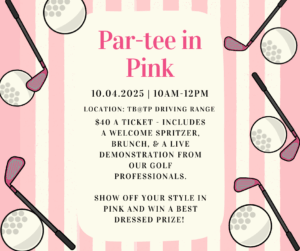 We’re hosting our first-ever pink-themed morning of golf, brunch, and fun at the TB@TP Driving Range on Saturday, October 4th, 2025 | 10AM–12PM — and you’re invited!